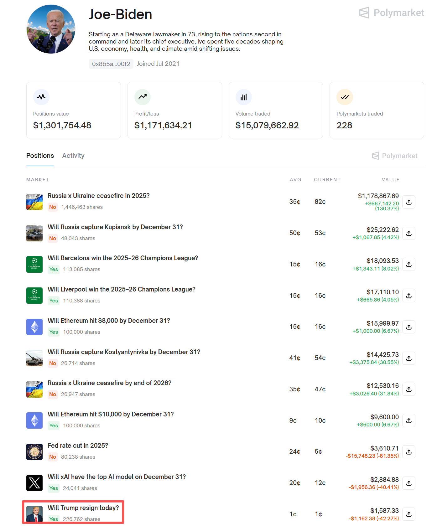 加密市场也同步回稳。结合特朗普家族在加密产业的深度布局,以及其执政以来在政策上展现的强力推动力,短期内主动辞职或通过第 25 修正案交权的可能性依然极低。
