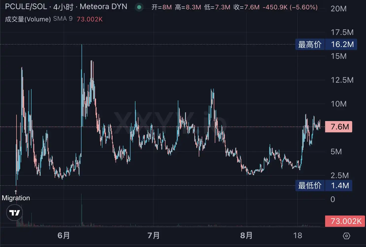 目前 Polycule 对每笔交易收取 0.01%–0.05% 的手续费,并将其中 30% 用于回购和销毁代币,从而为 $PCULE 提供通缩支撑。借助社交交易兴起的东风,Polycule 一方面迅速扩大用户群,另一方面其交易手续费「燃烧」机制也形成正反馈,推动代币价格不断上涨。