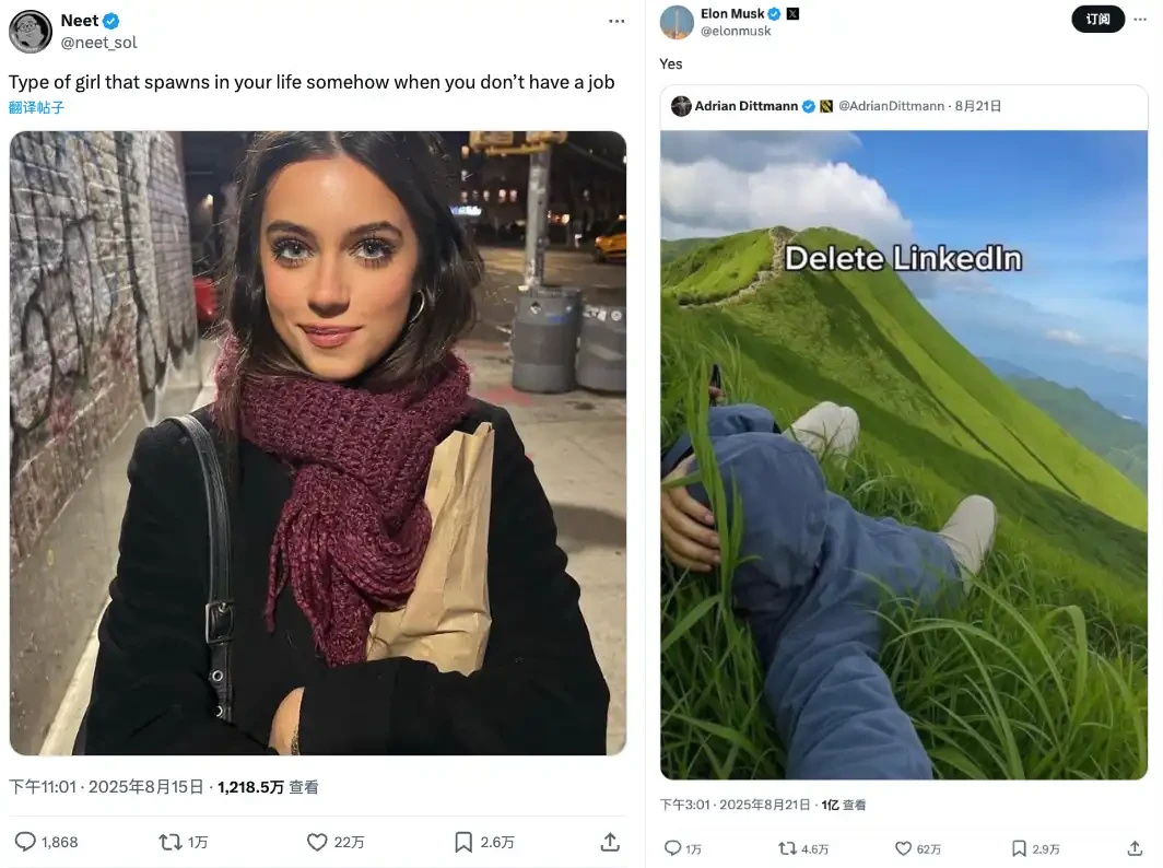 左:触及 1200 万阅读,右:马斯克转发带来 1 亿阅读