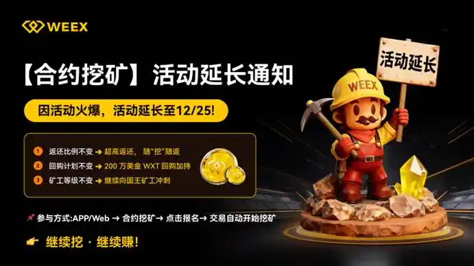 作为 WEEX 生态系统的核心,WXT 致力于激励交易平台社区的合作伙伴、贡献者以及活跃用户。通过「合约挖矿」活动和 WXT 回购机制,WEEX 不仅为用户创造了更多收益机会,也进一步巩固了 WXT 的市场地位。