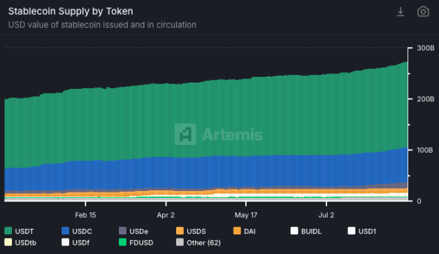 在传统金融中,M 2 货币供应量增长往往先于资产泡沫。在加密货币市场,稳定币市值的作用类似 —— 代表加密生态系统内可用的「美元」总量。