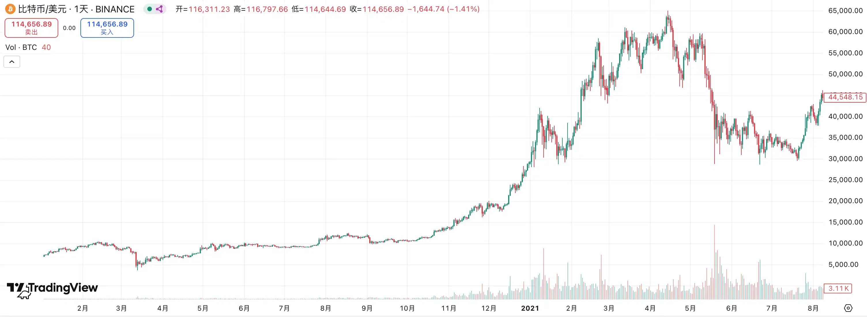 在这种叙事推动下,ETH 从年初不足 1,000 美元,一路上涨至 4,800 美元;SOL 从不足 2 美元涨至 250 美元,成为年度最大黑马之一。整个加密市场市值在 2021 年 11 月突破 3 万亿美元,达到历史顶峰。