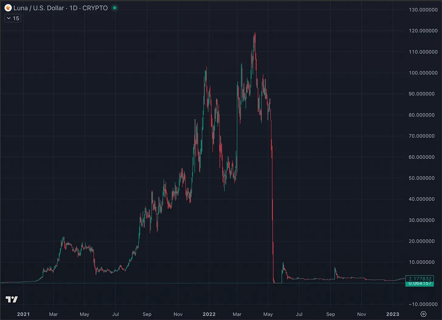 Odaily 注:LUNA 在崩盘前的价格走势图。