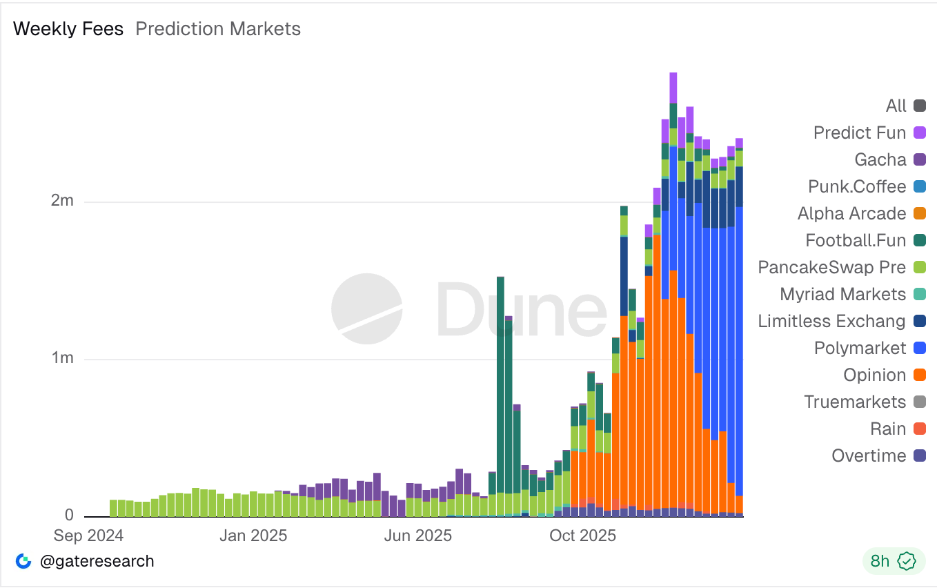 根据 Gate Research 在 Dune 上所编绘的数据,自 1 月 6 日开始征收交易手续费以来,Polymarket 已累积收取了超 1120 万美元的手续费收入。