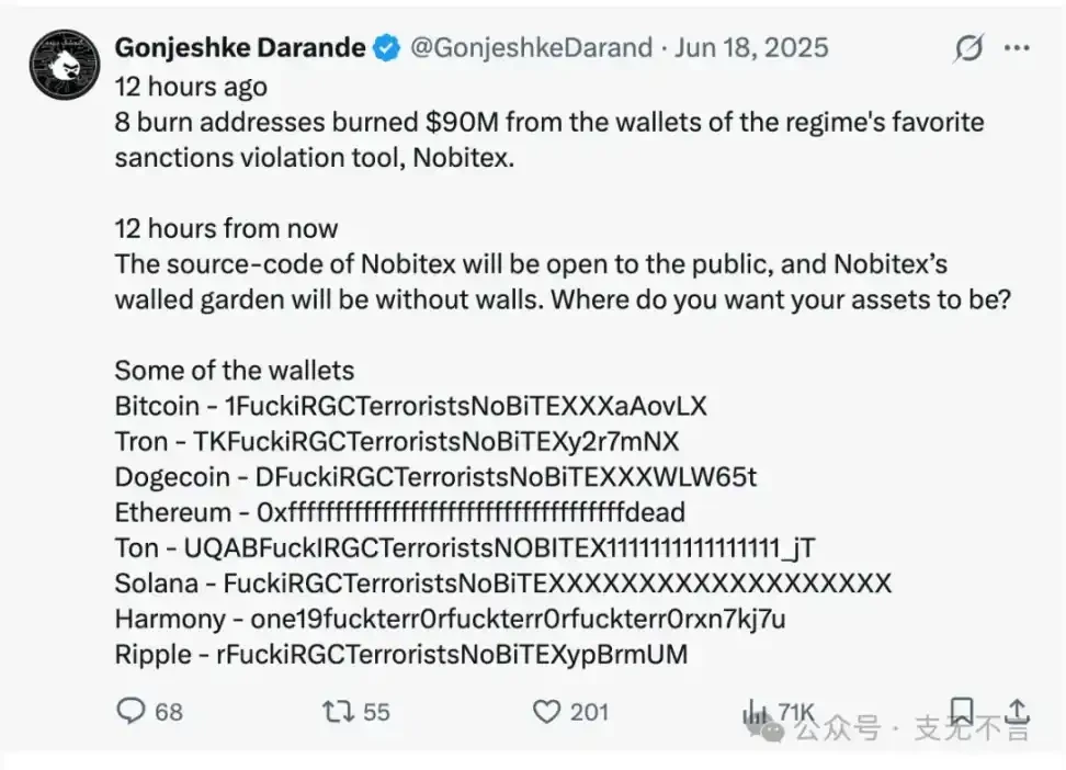 2025 年 6 月 18 日凌晨,数千万中国人在熬夜抢购打折商品的时候,伊朗最大的加密交易平台 Nobitex,也被「清仓」了。
