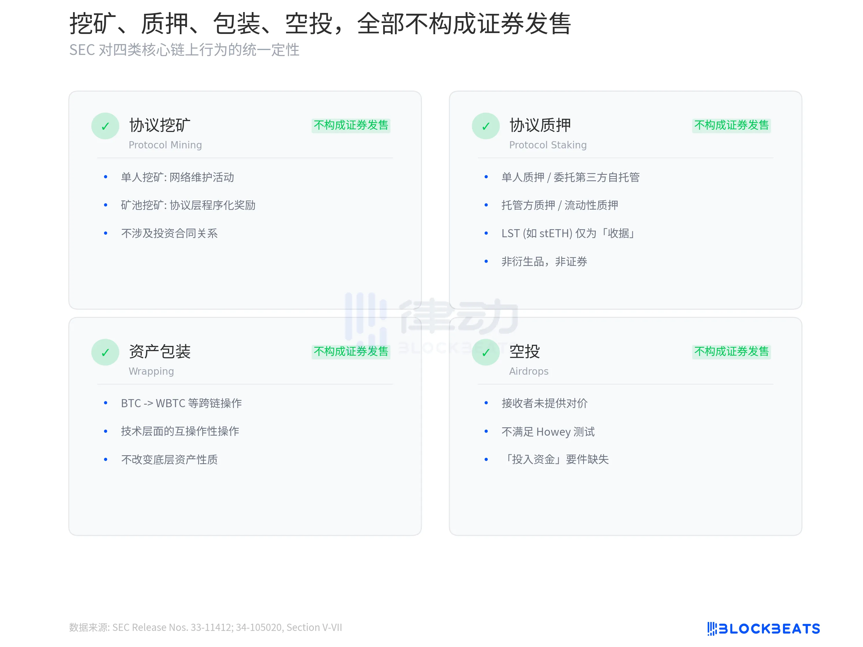 代币分类之外,这份文件的另一个重大贡献是对挖矿、质押、包装、空投四类核心链上行为做出了统一定性。