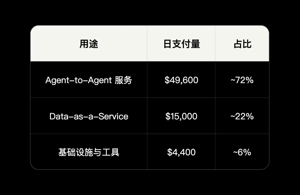 • 基建类项目使用量跌幅最大:x402secure.com(-80%+)、AgentLISA(接近归零)、pay.codenut.ai(大幅萎缩)
