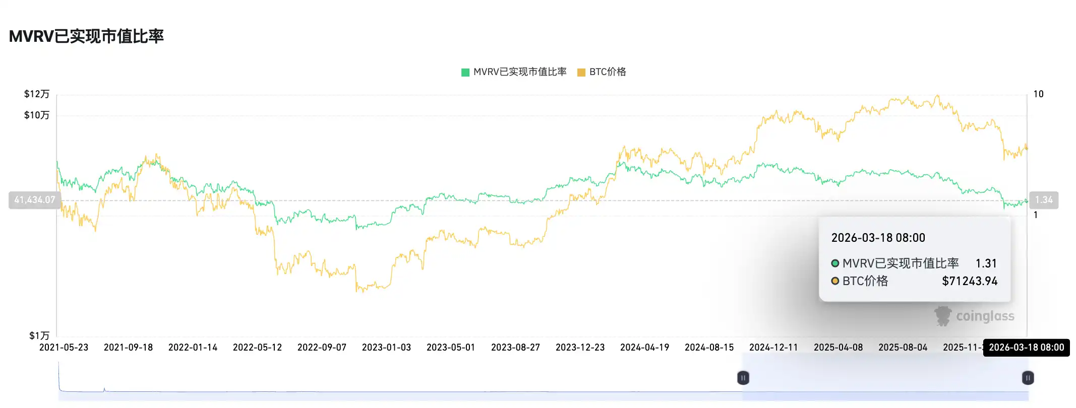 在本轮周期中,比特币触及的最低数值为+0.26,这意味着经典的「绿色区间」尚未经过测试。」(上图图 2)3 月 14 日,Bitcoin News 发文指出,MVRV Z Score 已降至约 0.38,该水平此前曾预示估值过低。