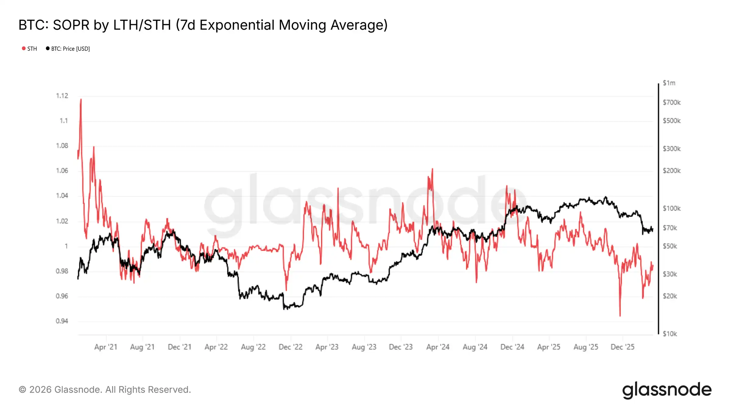 2 月,Bitfinex 曾发布分析报告指出,链上指标显示调整后 SOPR(已花费输出利润比率)已降至 0.92–0.94 区间,反映多数币种在亏损状态下转移,结构性压力仍存。