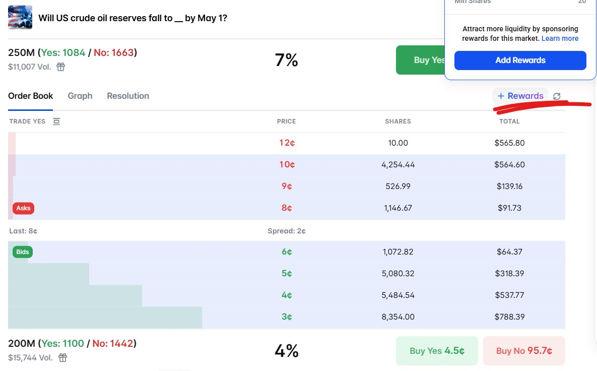 目前可在 polymarket.com/rewards 实时查看活跃奖励押注事件和个人收益。激励利差范围在订单簿界面以蓝色高亮显示,用户也可以查看 Polymarket 官方文档。