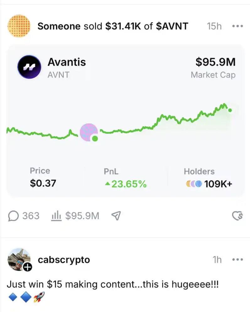 · 社交与创作者经济的闭环: 集成 Farcaster 与 Zora 协议。用户发布的每一条动态都能通过 Zora 转化为可交易的数字资产,实现真正的「发帖即变现」。同时,社交流中直接整合了精选交易动态,让「链上发现」变得直观且具社交属性。