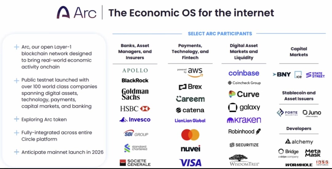 - 垂直整合:交易媒介(USDC)+ 渠道(Coinbase,Visa)+ 结算层(ARC 公链)