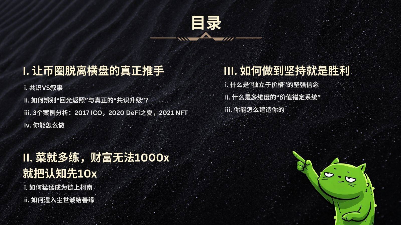 如果你想自己学会辨别,光看理念没用,得先复习遍加密史,从中学习并总结,才有概率在下一个共识升级时发现重点。