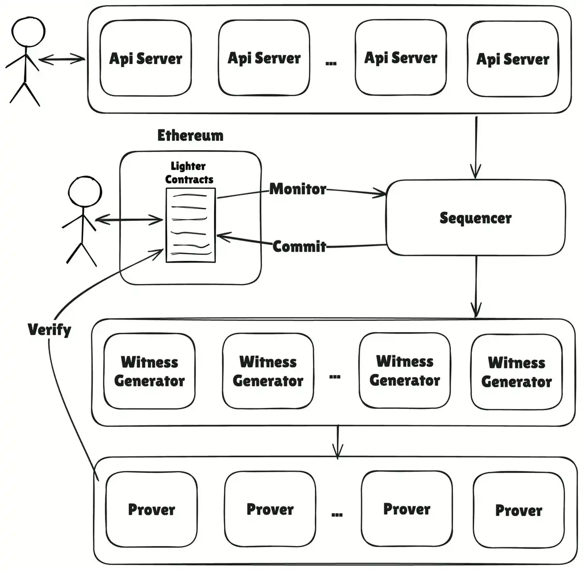 多层聚合:为了最小化以太坊上的 Gas 成本,Lighter 使用了多层聚合引擎。这将数千个单独的证明压缩成一个批量证明,以便在以太坊上进行最终验证。