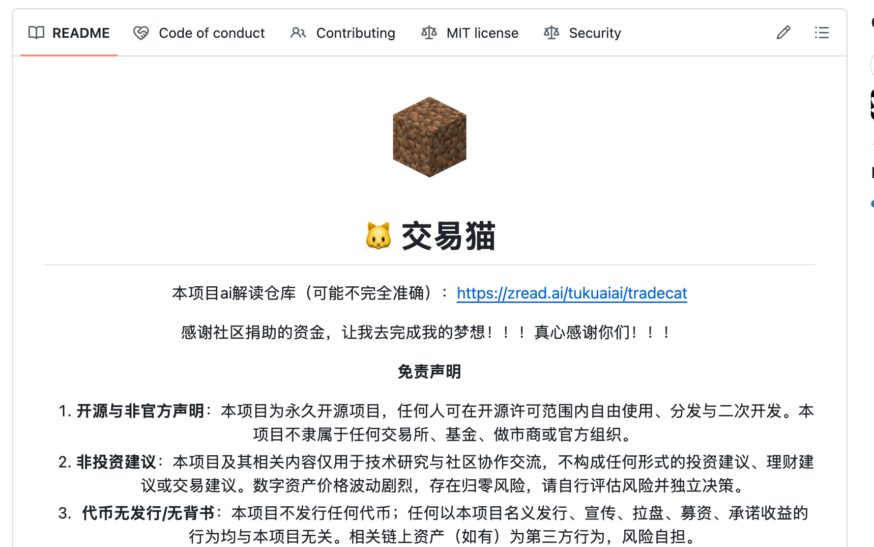 Github 仓库:https://github.com/tukuaiai/tradecat