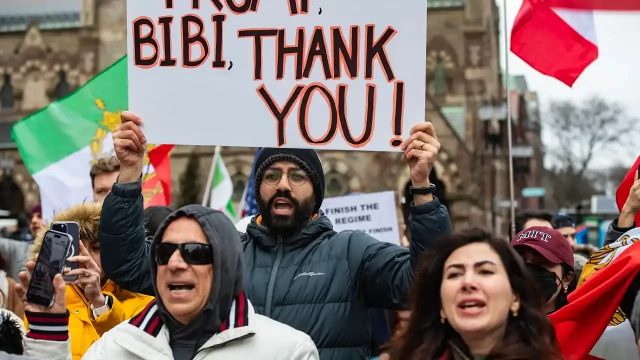 一些伊朗裔美国人在科普利广场集会,呼吁伊朗伊斯兰共和国垮台
