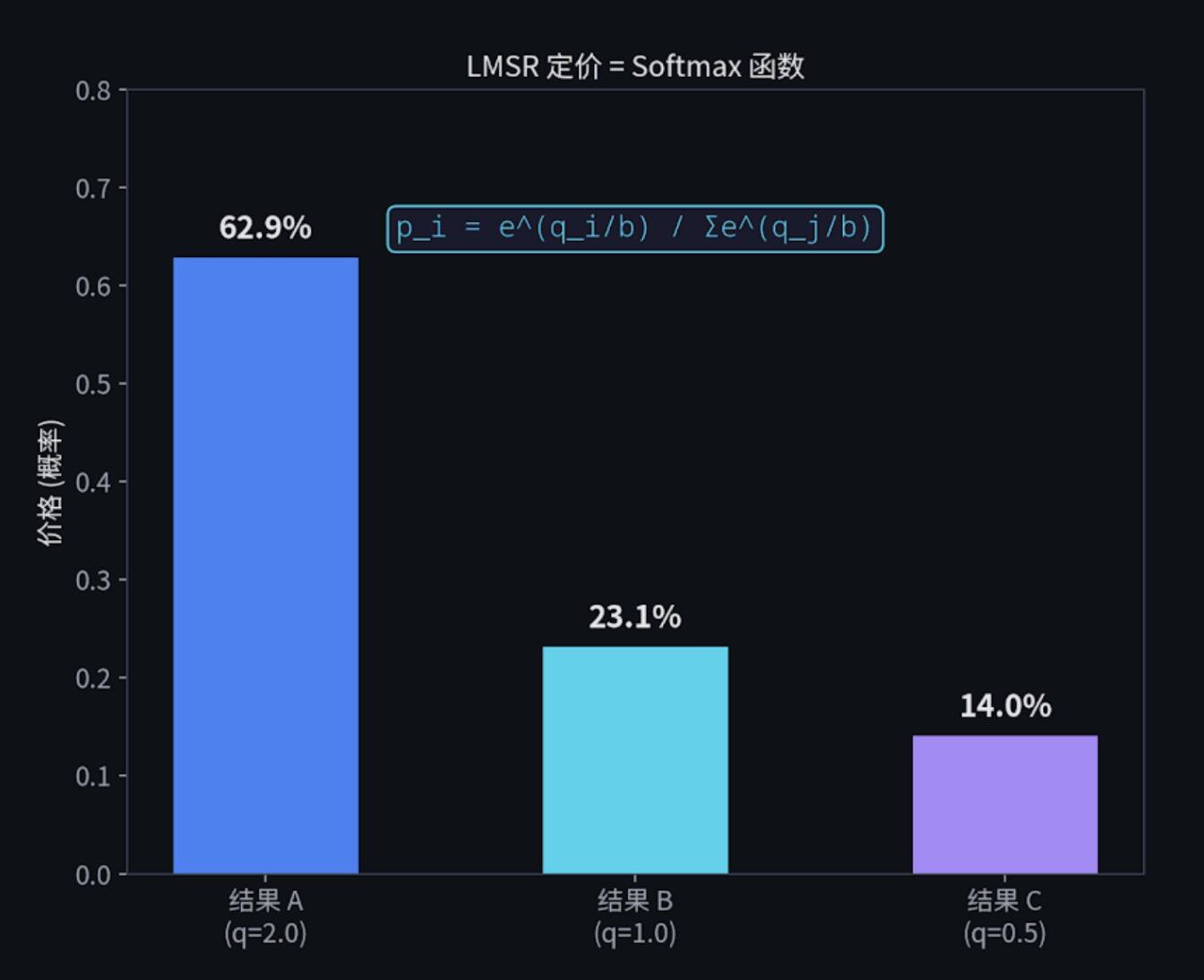 如果你懂一点机器学习,看到 LMSR 的价格计算公式,你会立刻惊呼:这不就是 Softmax 函数吗!