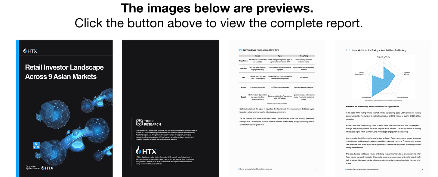 本报告由 Tiger Research 撰写,加密货币市场虽然增长迅速,但散户投资者数量却在下降。我们分析了亚洲九个潜在用户群体最大的市场的准入门槛,以及交易所的应对措施。