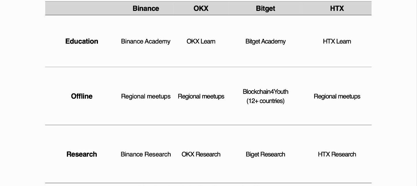 全球交易所正朝着两个方向发展。第一个方向是深化在线内容:数百个分级教育模块、大学附属认证项目以及“边学边赚”模式,通过向学习者奖励少量加密货币来创造首次拥有加密货币的体验。