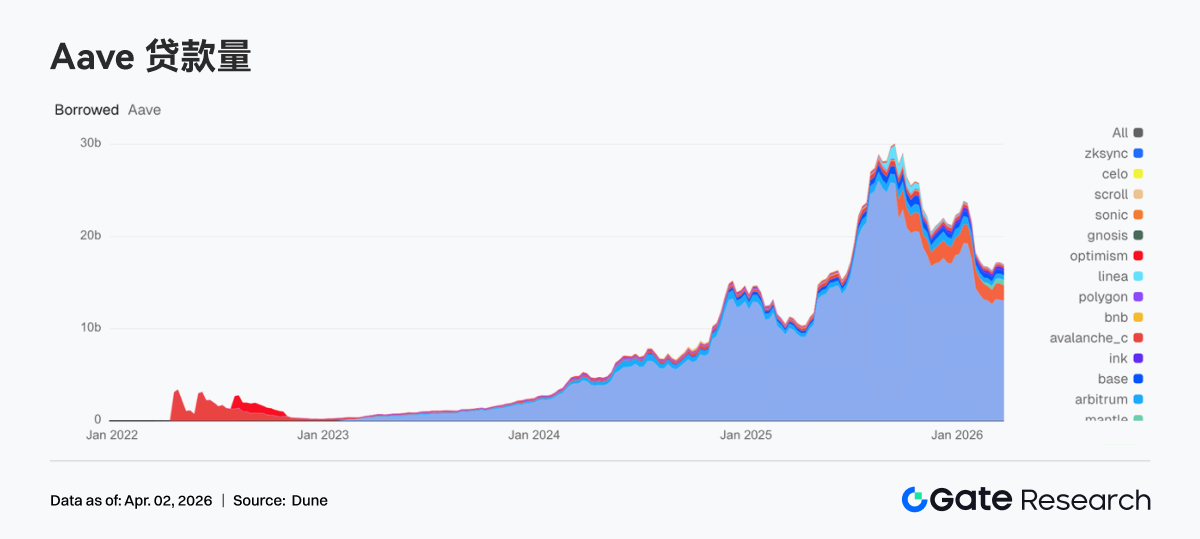 3.4 Aave 贷款量回撤,Mantle 成少数吸收增量的市场